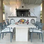 Une cuisine complète, ainsi qu'un coin repas extérieur, sont disponibles pour les repas. Vous trouverez également un réfrigérateur, un four et de la vaisselle pour préparer votre propre repas. L'aéroport le plus proche est international d'Athènes Elefthérios-Venizélos, à 195 km de cette villa de 3 chambres.